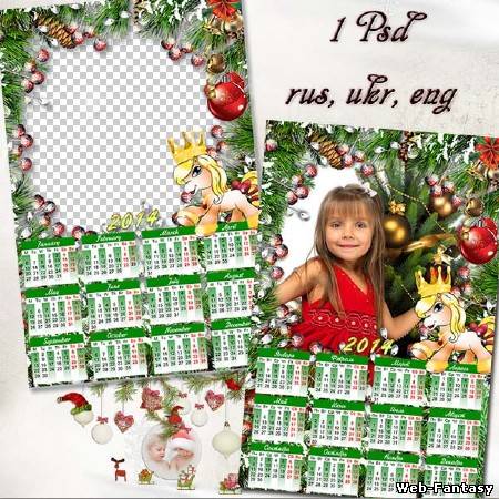 Примечание: слои отдельно. Календарная сетка на русском, английском украинском языках.